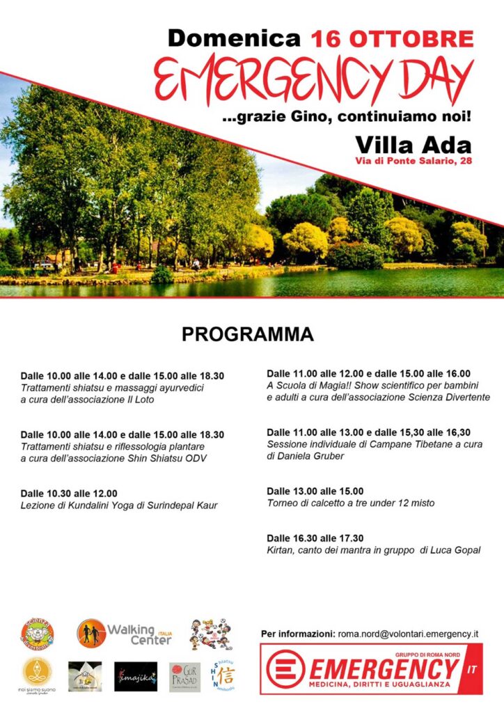 DOMENICA 16 OTTOBRE ti aspettiamo a Villa Ada per l’Emergency Day.