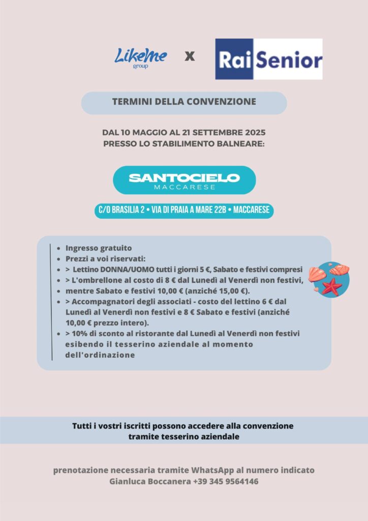 Convenzione valida dal 10 maggio al 21 settembre 2025 per lo stabilimento Santocielo a Maccarese.