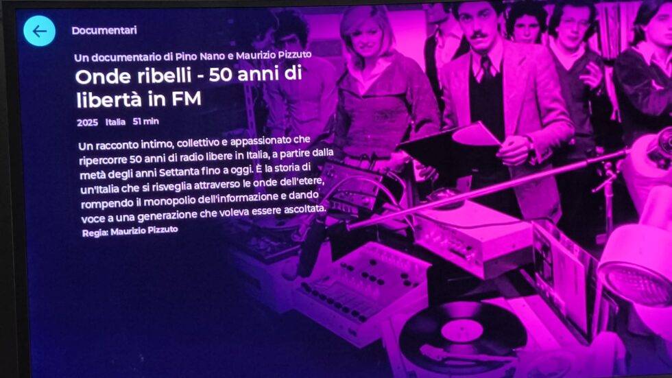 Scritto da Pino Nano e Maurizio Pizzuto, reperibile su RAI Play – la regia è dello stesso Maurizio Pizzuto- attraverso le parole dei protagonisti di quell’epoca, speaker, tecnici, fonici, conduttori e pionieri del microfono, il documentario racconta la nascita e l’evoluzione delle prime emittenti private, spesso sorte in scantinati, garage o piccoli appartamenti trasformati in studi. Le loro voci diventano un coro ribelle che ha attraversato l’Italia da nord a sud, dando vita a una nuova forma di comunicazione: libera, diretta, irriverente, umana.